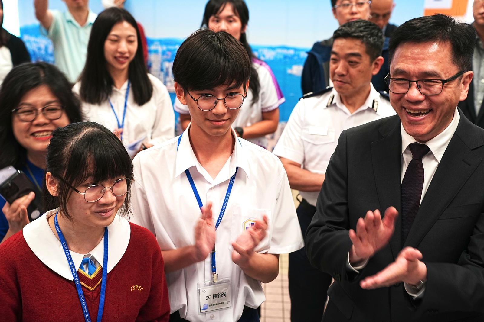衷心感謝創新科技及工業局局長 孫東教授, JP、教育局觀塘分區學校發展主任等嘉賓撥冗蒞臨指導,並現場欣賞學生精彩的民族舞表演,為活動增添色彩。活動內容豐富多元,包括警務處、友校及本校學生聯合舉辦的互動攤位遊戲,同學可近距離參觀「NSpeed 國安快遞」宣傳車、體驗「護港快訊照相機」,並透過專題展板深入瞭解「一國兩制」下香港維護國家安全的實踐與防騙相關知識。