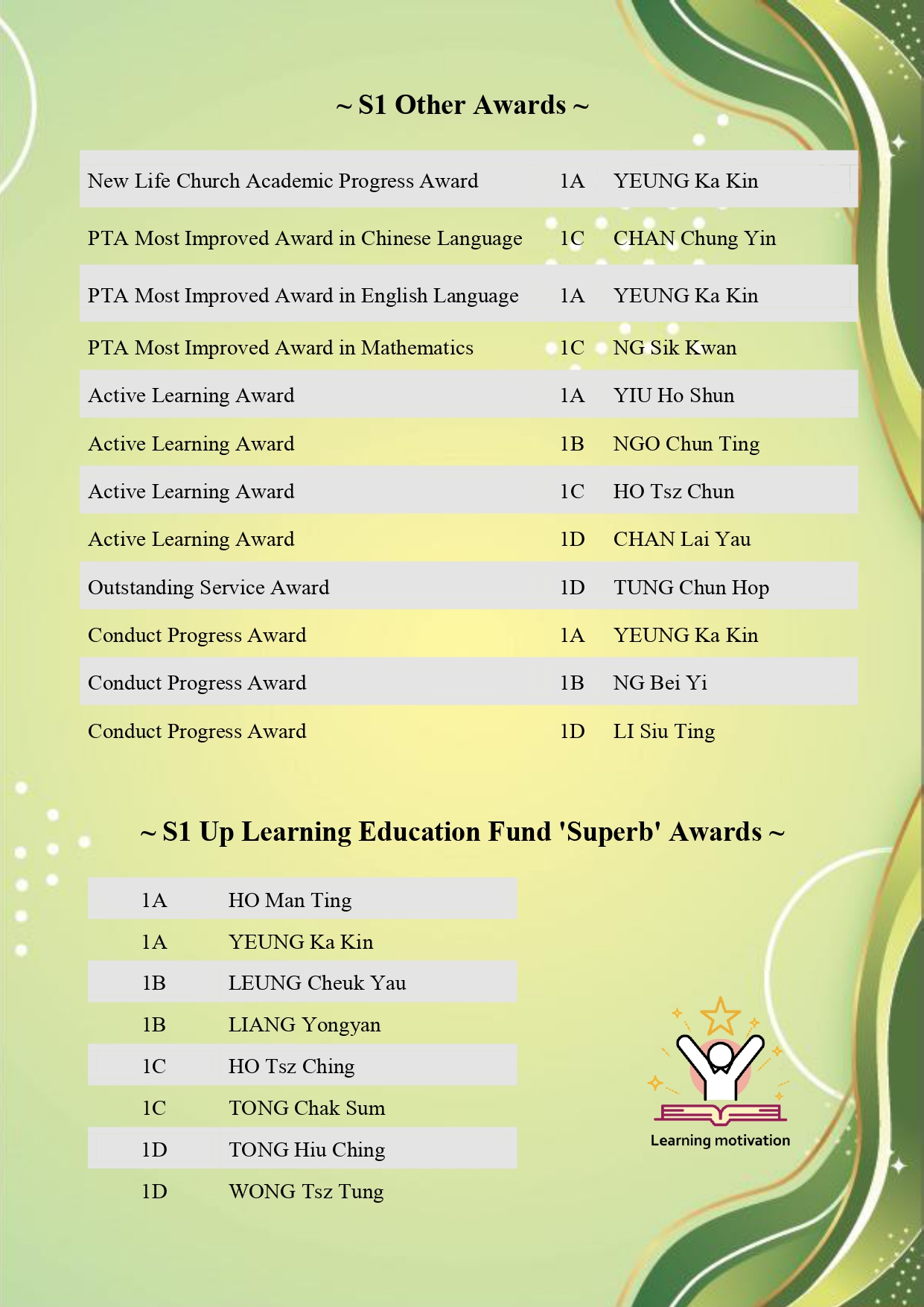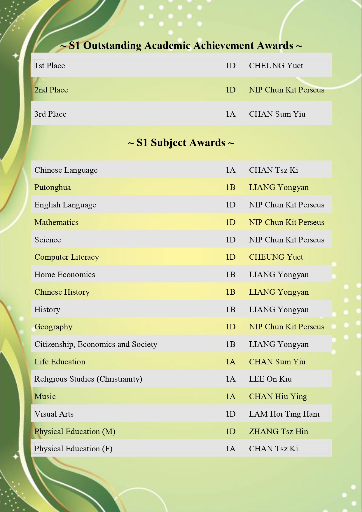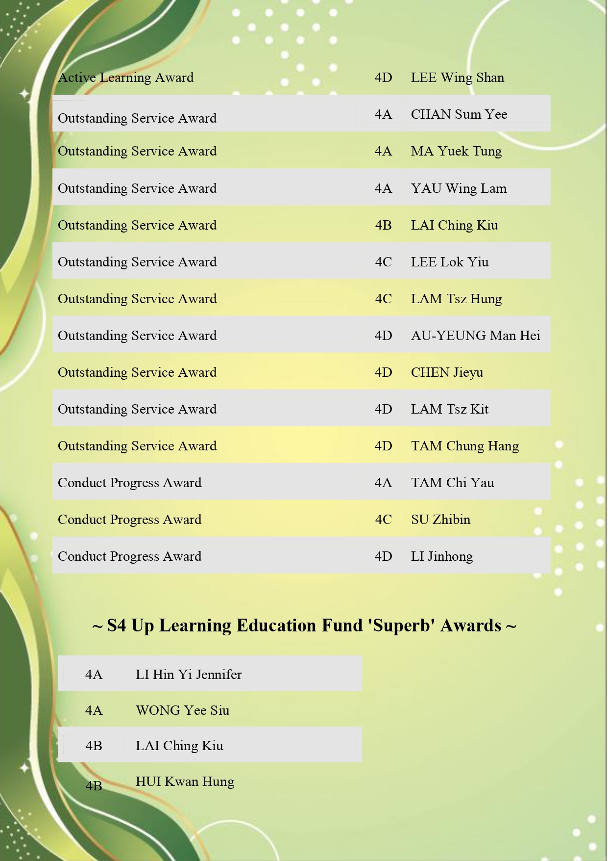 NLSI Lui Kwok Pat Fong College Award List 2024-2025