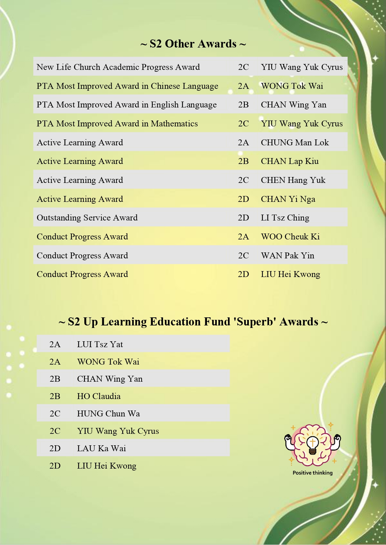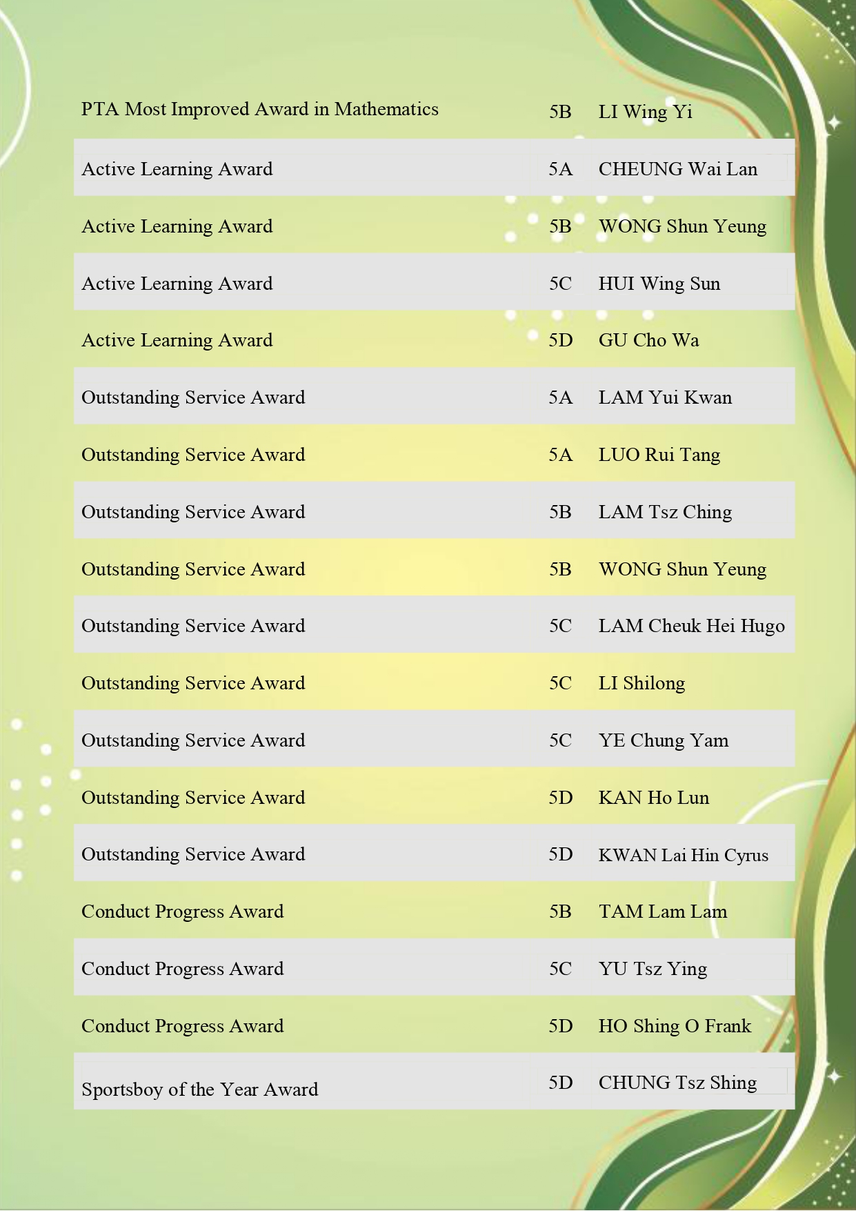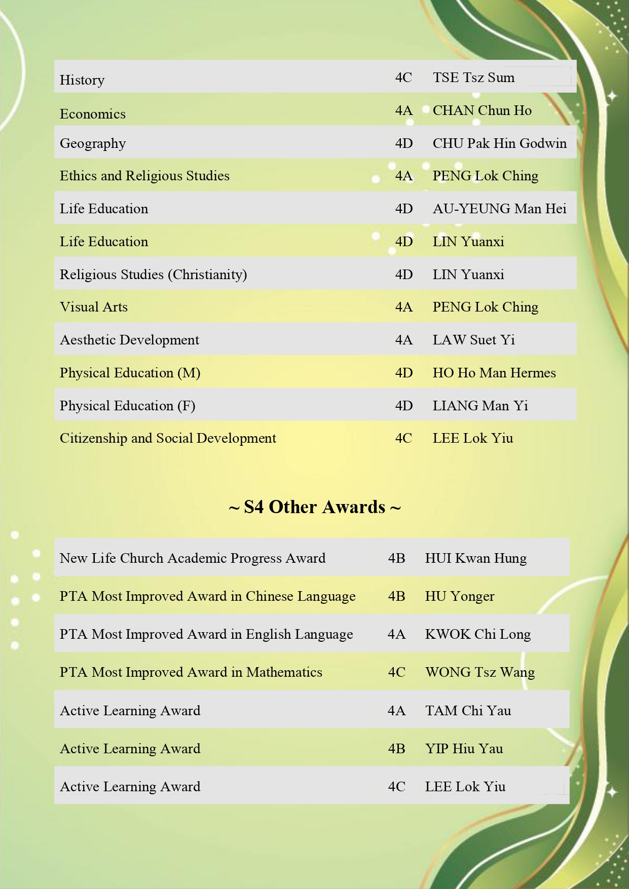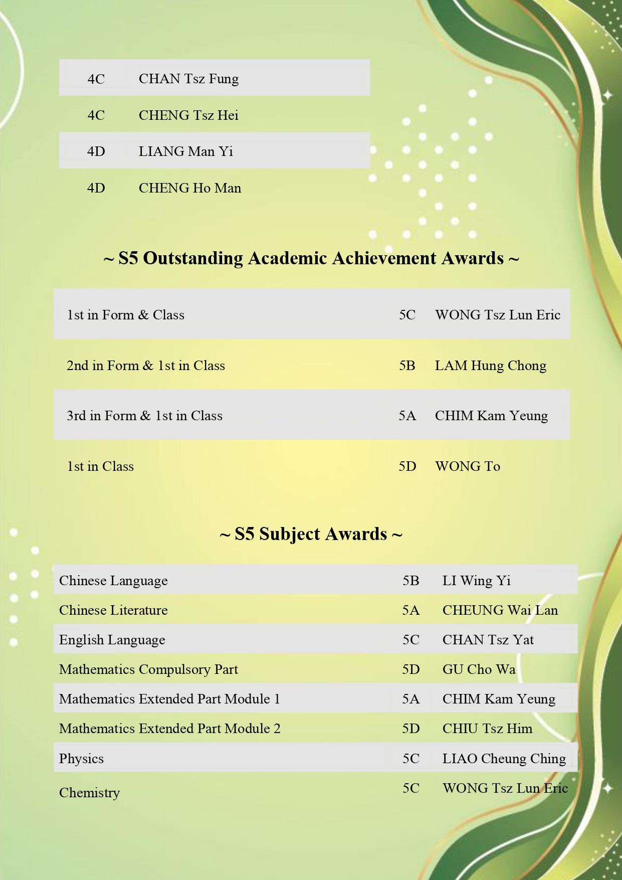 NLSI Lui Kwok Pat Fong College Award List 2024-2025