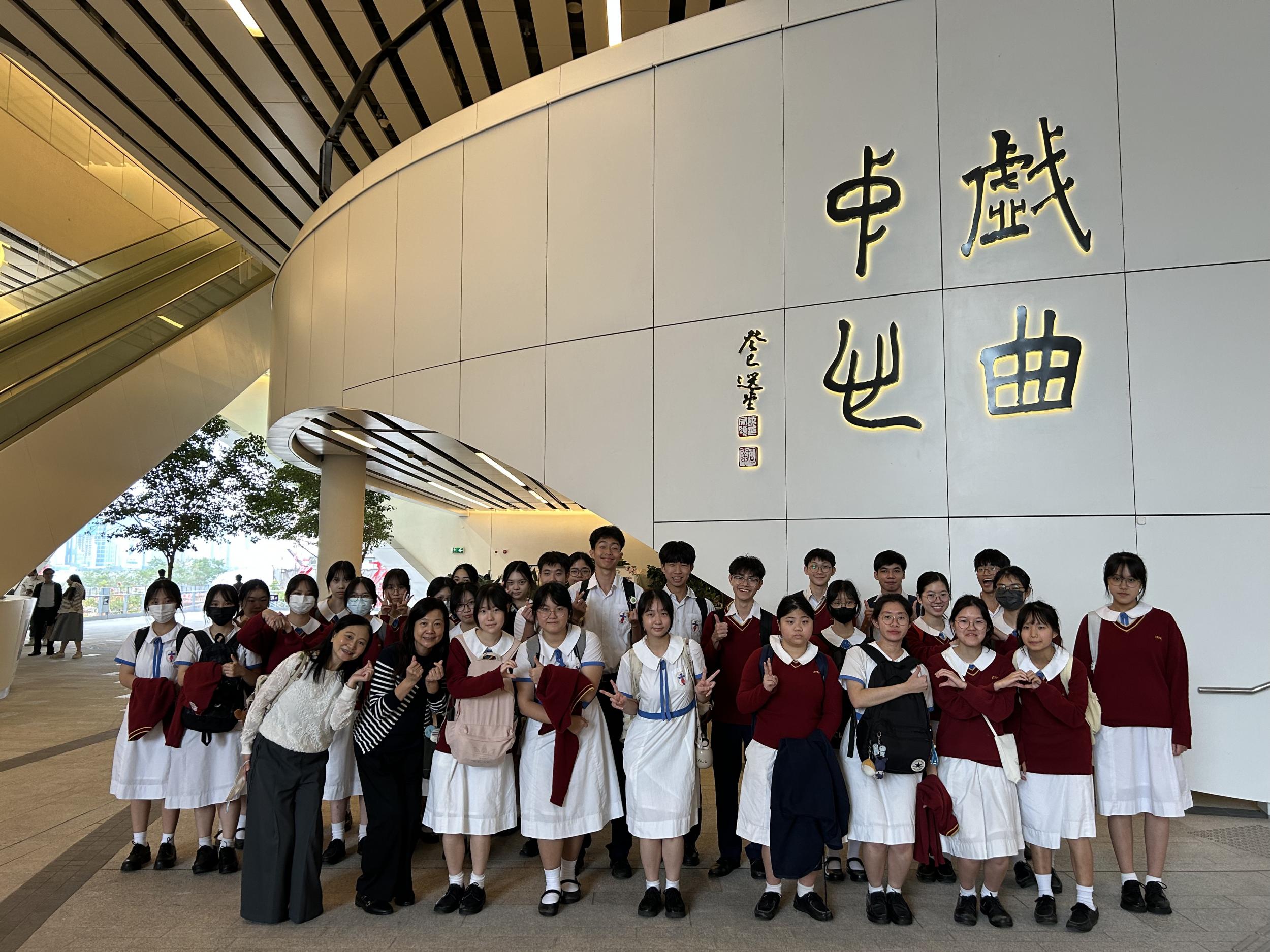 本校中五至中六級修讀中國文學科的學生於11月11日參觀戲曲中心。在導賞員的帶領下,遊走戲曲中心各主要設施,了解其空間設計如何配合戲曲獨特的藝術需要,並學習中國文化的有趣知識,例如唱唸做打表演形式、四大行當、化妝服飾等。學生可發掘傳統藝術的趣味之餘,亦體會戲曲其實與日常生活息息相關。