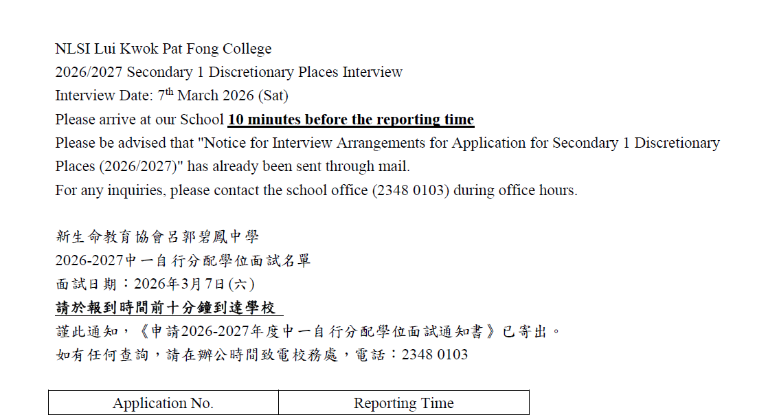 2026-2027中一自行分配學位面試名單